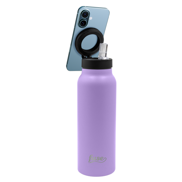 This sleek, double-wall stainless steel water bottle keeps your drink at the perfect temperature while the built-in MagSafe® phone holder lets you stream, scroll, and create—completely hands-free. Stylish, functional, and designed for life on the go.